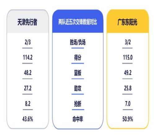 篮板控制力的争夺是本场对决的又一关键。天津队内线有詹姆斯坐镇,其以场均9.6篮板排在联盟第二,上赛季与广东队两次交手共摘下30篮板,统治力可见一斑。另一外援雷诺兹脚步灵活、弹跳出色,也能为球队提供篮板保障。广东队内线此战需轮换冲击、形成合力,尽量减少对方二次进攻机会,争取帮助球队在篮板端掌握主动权。