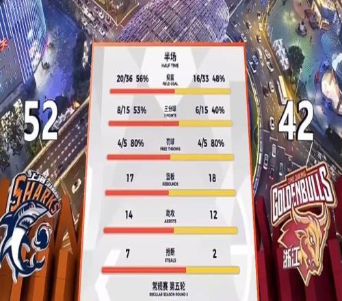 半场数据统计方面,李弘权半场三分5中4砍下18分,大鲨鱼全队三分15中8命中率超50%的同时完成7次抢断和2次封盖,造成对手出现10次失误。