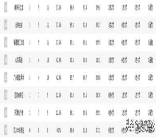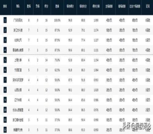 广厦击败北京之后,前八轮7胜1负的球队分别是广厦,北京,青岛三支球队,他们位居积分榜2-4名的位置。