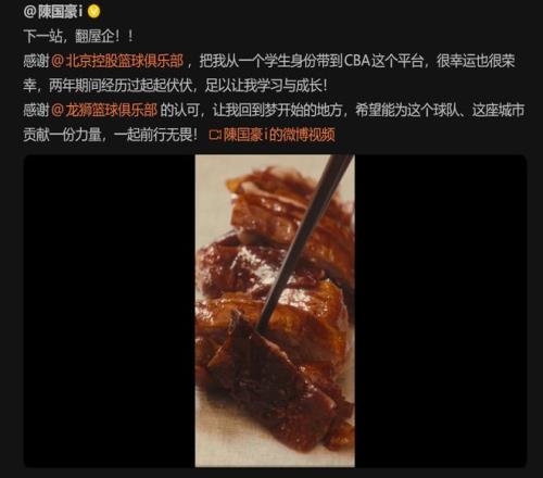至今还记得陈国豪官宣加盟广州龙狮男篮时拍摄的那条宣传片。