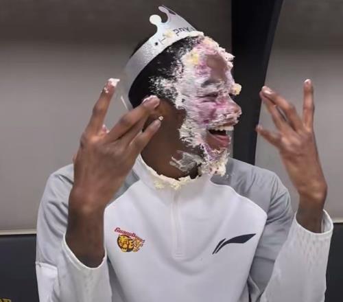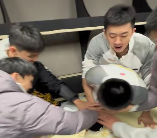 当全部东西都弄完之后,胡明轩肯定是最积极的,他和王少杰、徐杰等人一起将萨姆纳摁在蛋糕上,整个更衣室的人都在呐喊,显得极为开心。