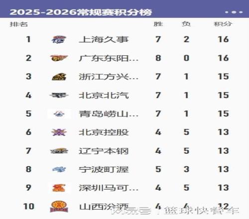 排在积分榜第5名是青岛队,作为本赛季最大黑马,青岛队虽然没有杨瀚森,不过,目前他们的战绩还是7胜1负,与广厦、北京持平。排在积分榜第6名的是北控队,他们在这一轮比赛以105-101击败深圳队,成功拿到赛季第4胜,截止到目前,北控已经拿到4胜5负的战绩。而四冠王辽宁队,他们这一轮又输给上海队,球队战绩变成4胜5负。目前,辽宁队的排名已经下滑到积分榜第7名。