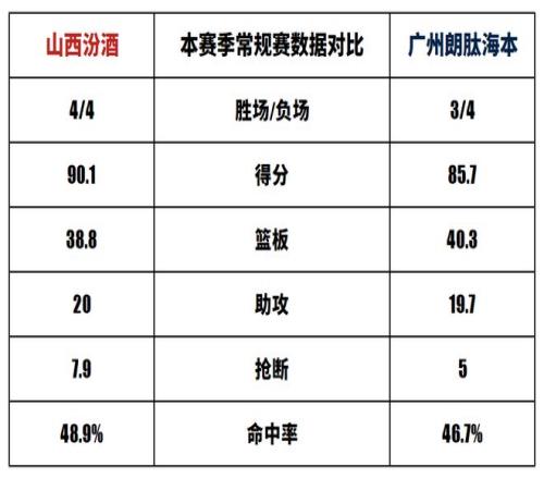 山西汾酒与广州朗肽海本历史上一共交手44次,山西汾酒23胜21负。上赛季两队交手2次,山西汾酒2胜0负。