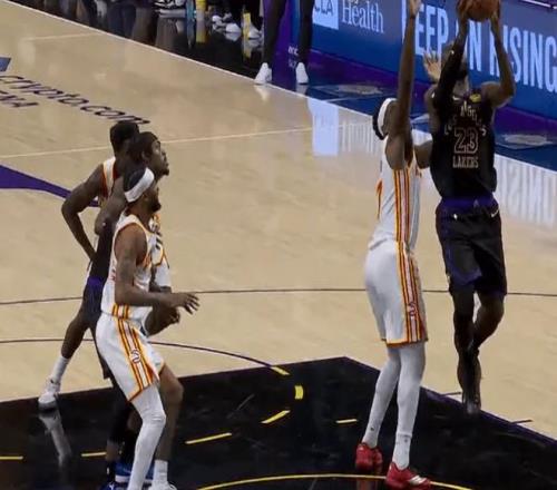 易边再战,斯玛特连续制造进攻犯规,詹姆斯三分手起刀落也投进,湖人轰出12-1领先老鹰到32分。盖伊三分跳投命中,亚历山大-沃克底角三分连续命中,老鹰打出13-0追至17分。詹姆斯突破上篮时意外被顶到膝盖,随后一瘸一拐跺跺脚继续打,真是强硬。