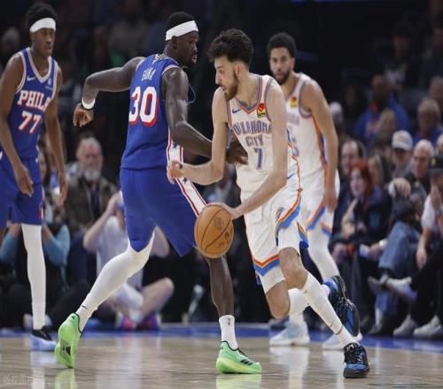 比赛一开场,两队便展开针尖对麦芒的拉锯厮杀。雷霆队凭借默契的团队配合,频频冲击三秒区得手76人这边则全靠马克西独撑进攻大旗,他不仅连续完成抢断反击,还多次杀伤禁区制造威胁,单节豪取 15 分。首节战罢,雷霆以32-29微弱优势领先。
