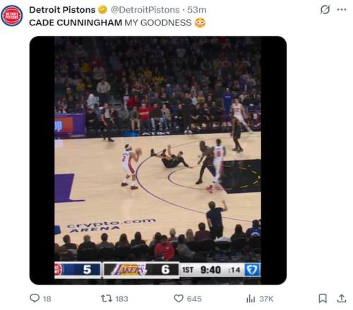 末节开场湖人是连送6次失误,活塞直接将8分的优势扩大到20分,雷迪克提前放弃比赛,CC也提前打卡下班,末节CC5分3篮板2助攻没有失误,全场比赛坎宁安32分钟,19中12,三分4中1,拿到27分11助攻5篮板1抢断5失误,命中率63.2%,突破太轻松,侧面数据湖人防守烂到极致。