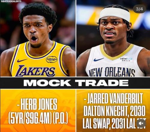 此前湖人与鹈鹕已经探讨过交易赫伯特-琼斯的方案,湖人只愿意送出一个首轮签与配平薪金,这无法打动鹈鹕队,要想从新奥尔良换来琼斯必须下血本。毕竟琼斯是联盟最稀缺的3D锋线,北京时间1月2日,美媒NBATRADElERTS为佩林卡指明了方向。