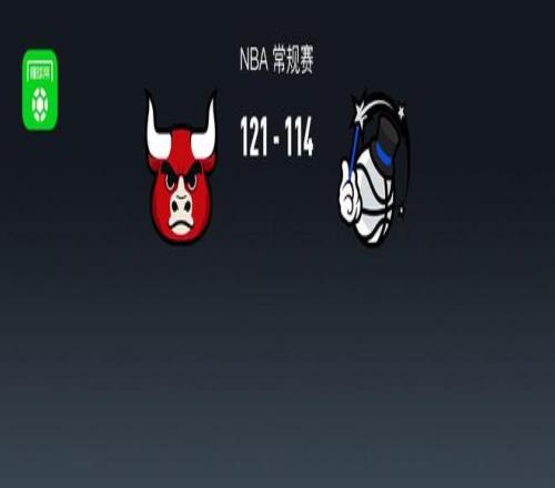 第四节公牛布泽利斯拿下9分,魔术班凯罗拿下6分,最终公牛121-114战胜魔术