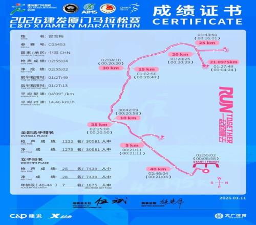 尽管吃得很少,但她跑得不慢。2024年的广州马拉松,那是她的首马,她跑了3小时06分。紧接着无锡马拉松3小时07分。到了25年底的深圳马拉松,她跑出了2小时51分59秒,第一次破三。