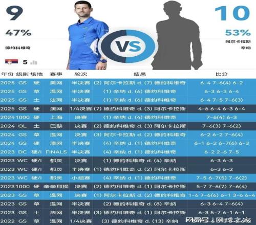 如果德约想夺冠,那么对阵阿卡和辛纳两人是无论如何绕不过去的。那么,在历史上与两人的硬地交锋中,德约的战绩如何呢?