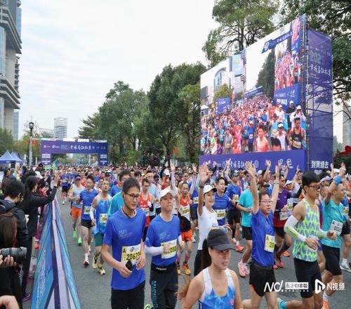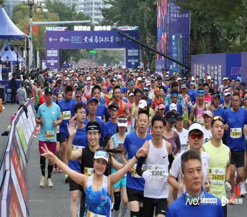 2025黄埔马拉松赛在科学城绿轴广场鸣枪开跑。