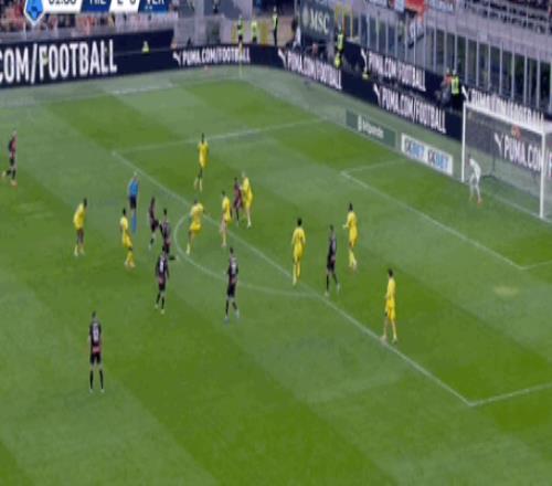 恩昆库打入加盟米兰的联赛首球,进球后展示了标志性的吹气球庆祝。