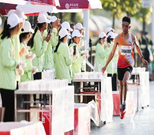 尤其在赛事中后程(约25公里后),随着体能消耗与气温升高,跑者对补水的需求显著增加。百岁山饮水站不仅提供瓶装水,更配合组委会设置的喷淋设施与降温海绵,构建“内补外降”的科学防护体系,助力跑者应对挑战。