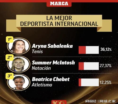 西班牙体育新闻权威媒体《马卡报》2025年度最佳运动员奖项名单揭晓。在备受瞩目的西班牙最佳运动员类别中,年仅22岁的网球天才卡洛斯·阿尔卡拉斯力压群雄,成功当选年度最佳。而在国际最佳女子运动员类别中,白俄罗斯网球名将阿丽娜·萨巴伦卡同样脱颖而出,获得这一荣誉。