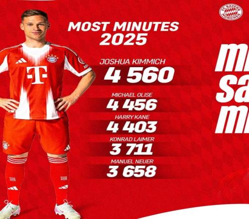 北京时间12月28日,拜仁官方在社交媒体上晒出了球队本年度的特别数据,其中包括队内的进球榜、助攻榜等等。