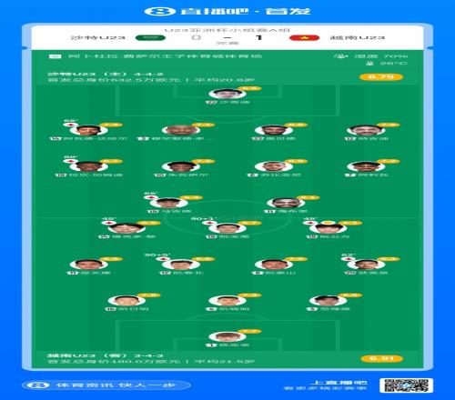 1-0战胜沙特U23的比赛,越南U23的首发阵容身价总和只有180万欧元,对手沙特U23(632.5万欧元)的首发身价和约是他们的3.5倍。