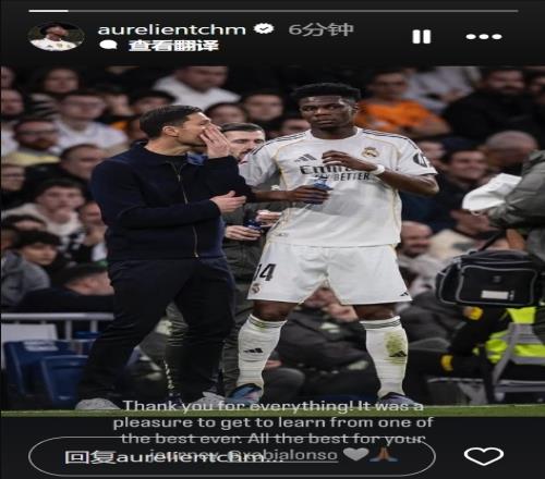 体育播报1月13日宣 在皇马宣布阿隆索下课后,皇马中场琼阿梅尼发文告别了他。