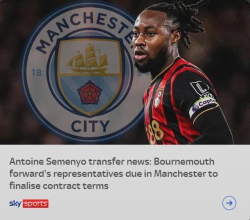 罗马诺发推:曼城将再次和伯恩茅斯就塞梅约的转会展开谈判,以争取在本周敲定这笔交易。