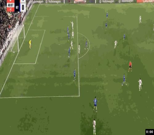 第21分钟,巴列卡诺禁区左侧角上任意球机会,勒戎操刀主罚大力兜射,皮球绕过人墙直奔球门而去,门将索里亚奋力将球挡出。第35分钟,巴列卡诺前场右侧连续转移到左侧,洛佩兹禁区角上策应直塞,查瓦利亚插上突入禁区倒三角回传,瓦伦丁禁区内一步迎球大力抽射,皮球稍稍高出横梁。上半时补时阶段,巴列卡诺快速反击转移到左侧,洛佩兹禁区前沿策应接球调整一步斜吊禁区右侧,后点无人防守的德弗鲁托斯迎球凌空怒射,索里亚扑救失误,皮球弹入网窝,巴列卡诺1:0打破僵局。
