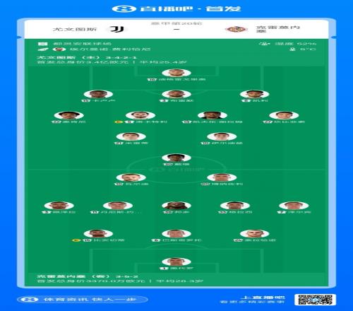 体育播报1月13日宣 意甲第20轮,尤文图斯主场迎战克雷莫内塞,赛前首发名单公布。