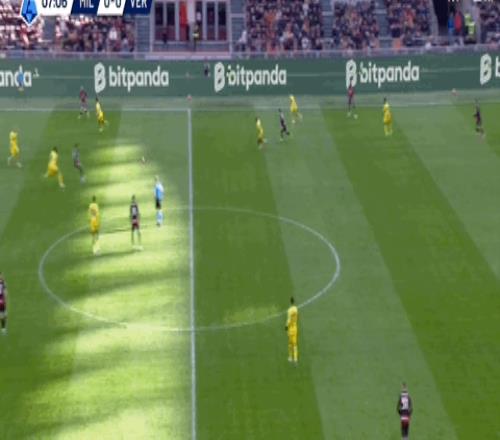 第86分钟,维罗纳扳回一球,但踩到迈尼昂手部犯规在先被吹无效