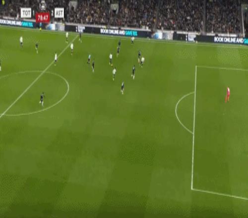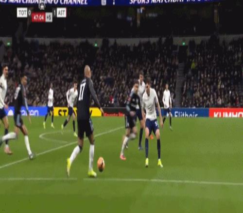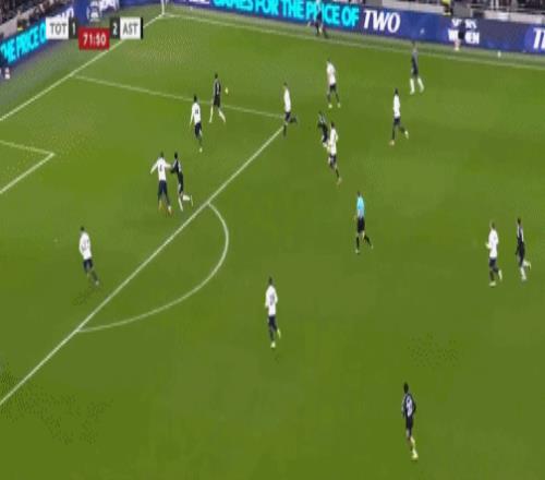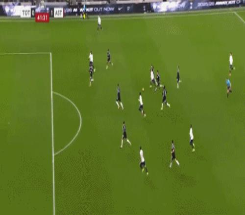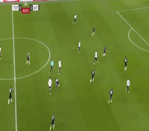 第45+3分钟,布恩迪亚脚后跟做球,罗杰斯破门,维拉2-0热刺