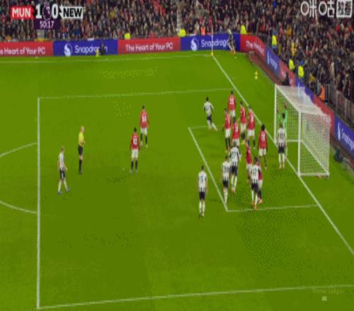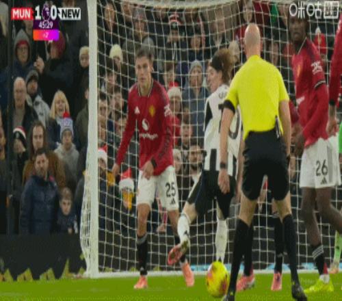 第24分钟,多古二点迎球凌空抽射破门,攻入曼联生涯首球,曼联1-0!
