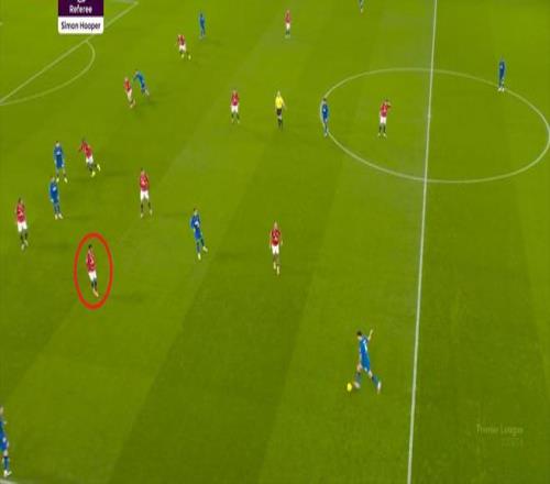 为了能尽量搞清楚这个问题,我们有必要回顾一下对阵纽卡斯尔的这场赛前发布会,阿莫林的前言后语到底说了什么。当时,媒体问到了阿莫林在上赛季说过的,球队需要加强的一些问题,比如需要引进更具侵略性的边锋球员,然后阿莫林想了起来,便表示他当时说的是阿玛德-迪亚洛。“去年我们大部分时间都让马兹拉维和达洛特踢那个位置,如果让阿玛德踢,那就完全不一样了。”这个位置,其实指的就是阿玛德目前的队内位置,三后卫体系当中的右翼卫,但在实际上,阿玛德的无球位置也并不像翼卫,他经常因为压迫和进攻职责出现在左中卫身前,只是需要跟人和防守的时候才会回到禁区内和边线处: