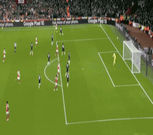 第48分钟,萨卡开出角球,加布里埃尔在马丁内斯的腋下将球打进,这也是阿森纳本场获得的第一个角球。
