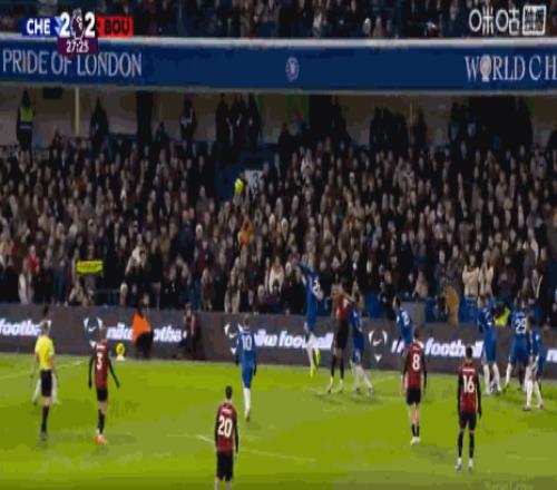第90+2分钟,切尔西差点被绝杀,于纳尔射门稍稍偏出