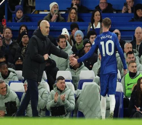 下半场比赛,在切尔西占据绝对优势、全力猛攻寻求制胜进球的时候,马雷斯卡选择将上半场罚进点球的帕尔默换下,这一换人决定立刻招致斯坦福桥主场球迷的一片嘘声,看台上随即响起了整齐的嘲讽歌声:“你根本不知道自己在做什么。”