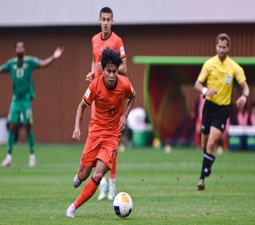 U23国足首发:16-李昊、2-胡荷韬、3-贺一然、4-吾米提江、15-彭啸、23-杨希、6-徐彬、20-李镇全、8-木塔力甫、9-拜合拉木、10-王钰栋