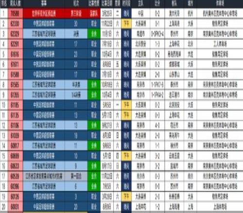 在排名前20位的比赛里,8场是苏超比赛,而且这8场比赛都是在南京奥林匹克体育中心体育场进行。不过,大连英博主场梭鱼湾9场跻身前20位,从而成为跻身前20位最多的球场。